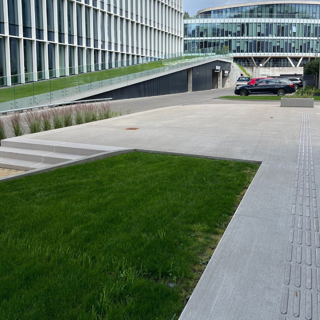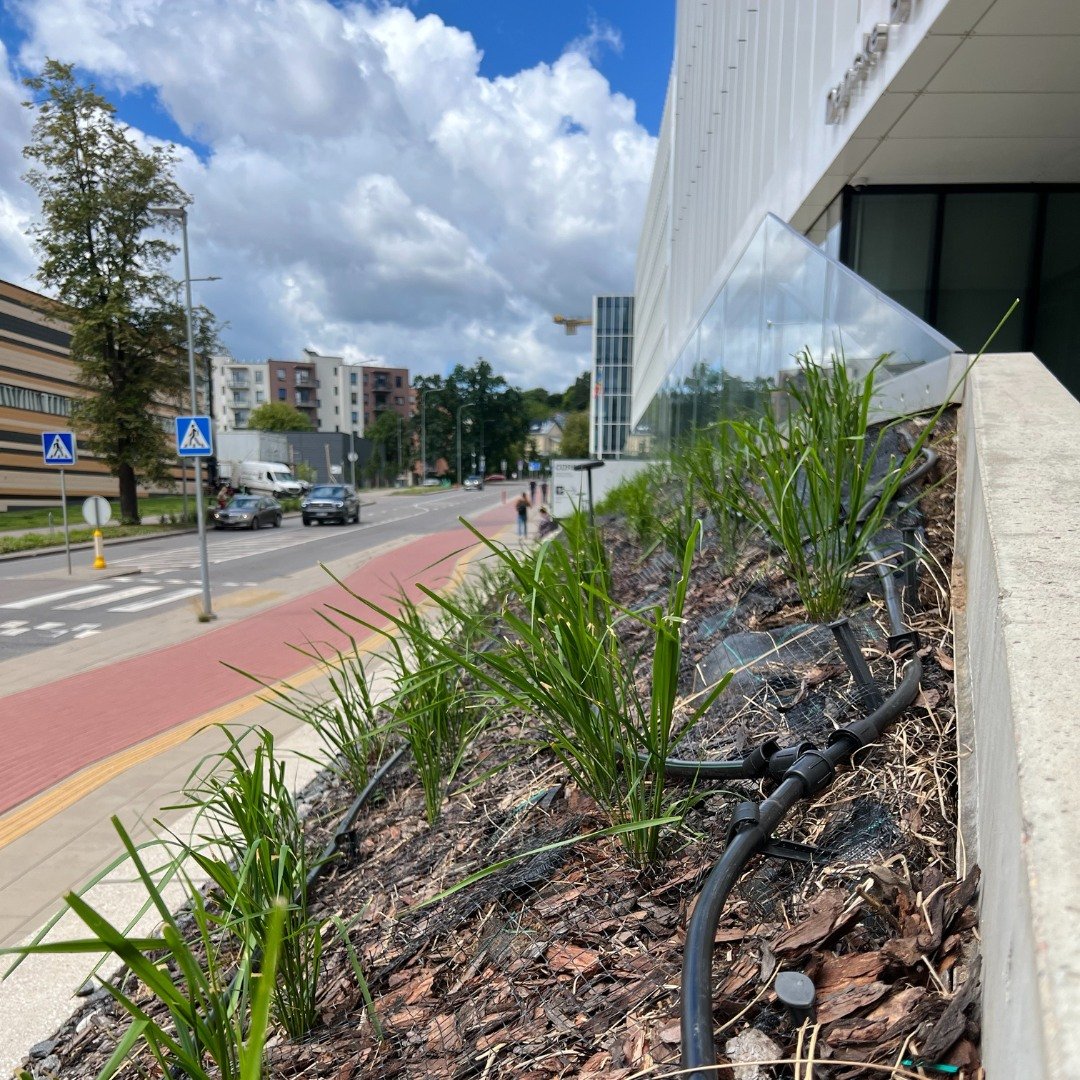 Įrengėme modernią laistymo sistemą prie naujo verslo centro, siekiant užtikrinti, kad pastatą supanti aplinka būtų ne tik reprezentatyvi, bet ir maloni kasdieniams lankytojams bei darbuotojams.
